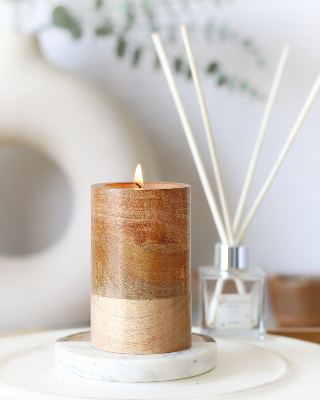 Breathe deep and relax with this glass shape candle from our luxury range. Gentle notes of essential oil fregnanace combine with organic soy wax to create a relaxing vibe in your home. Housed in a contemporary, natural-coloured pot.